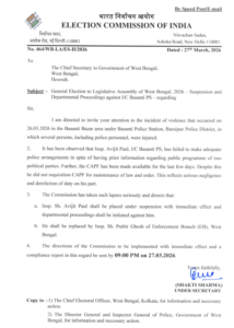 The Election Commission of India has suspended Avijit Paul, Inspector-in-Charge of Basanti Police Station, with immediate effect following a violent incident in West Bengal’s South 24 Parganas district.
