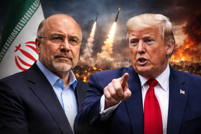 Iranian Parliament Speaker Mohammad Bagher Ghalibaf has issued a strong warning, accusing Donald Trump of attempting to turn negotiations into a “table of surrender” by violating ceasefire norms and escalating pressure tactics.