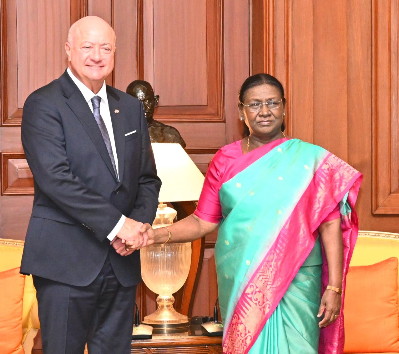 Called on President Droupadi Murmu @rashtrapatibhvn at Rashtrapati Bhavan during my official visit to India. Austria and India, as the world’s largest democracy and a strong European partner, share key strategic interests. Together, we stand for an international rules-based world… pic.twitter.com/h4fDv3nPP4