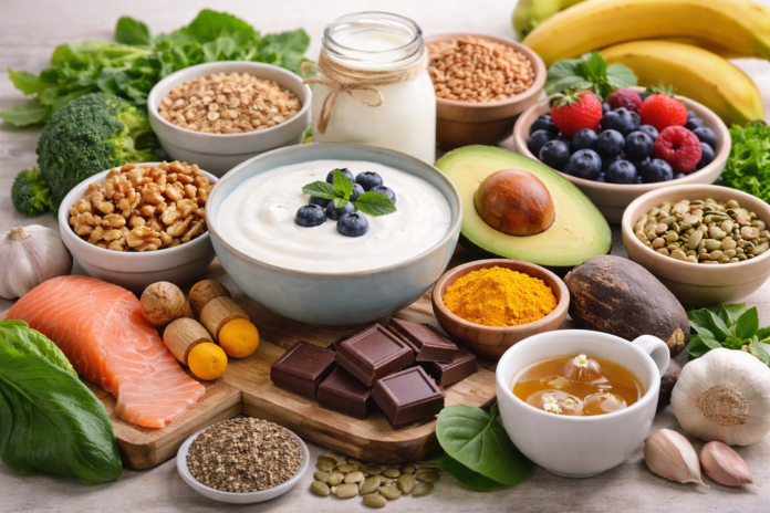 A significant portion of serotonin, the body’s “feel-good” hormone, is produced in the gut. To support this, foods like bananas, nuts, seeds, eggs, and dark chocolate can help improve mood, sleep, and emotional balance.