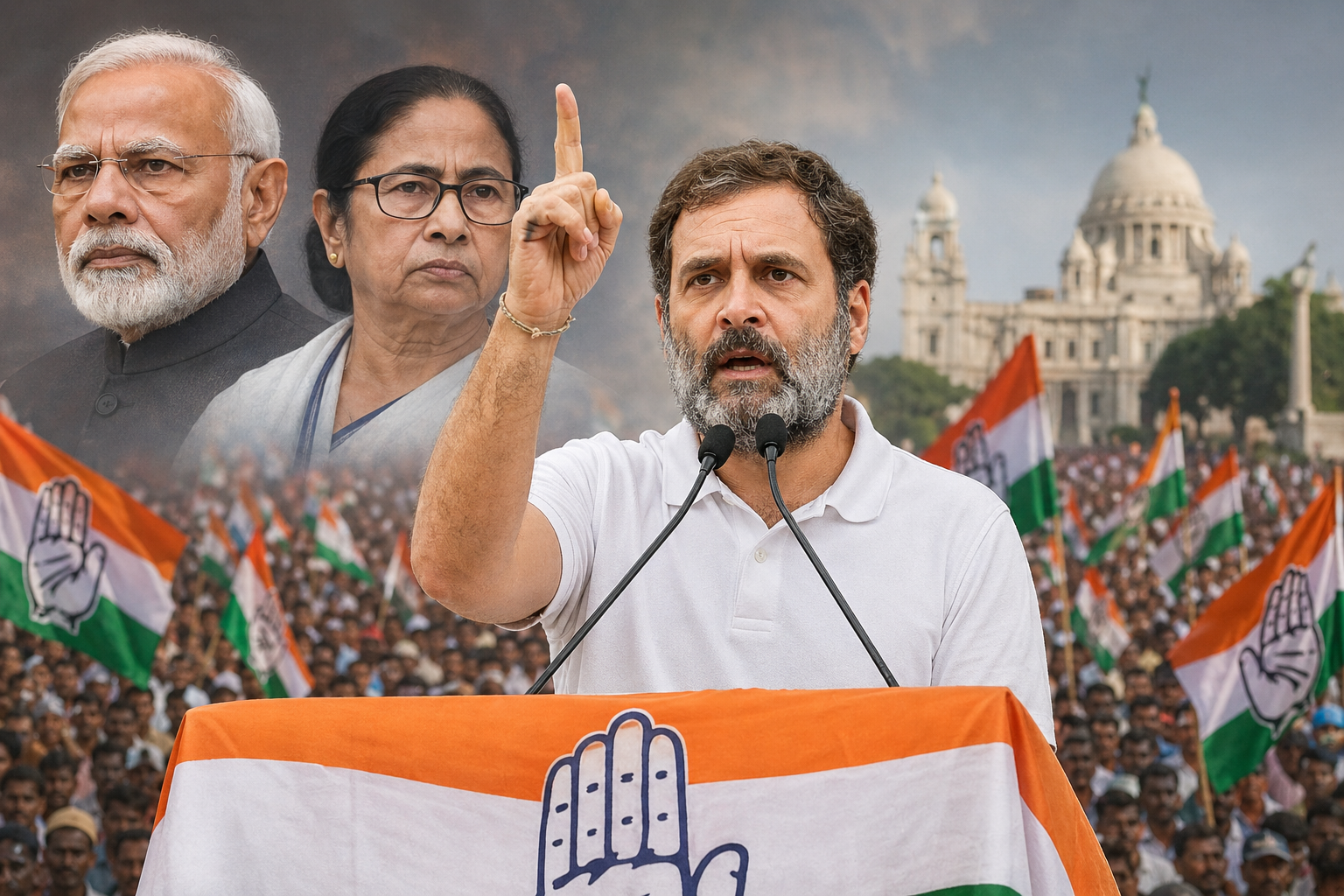 Framing the political contest as ideological rather than electoral, Gandhi asserted that the Congress vision is rooted in unity and inclusivity, while accusing both BJP and TMC of prioritizing power over people.